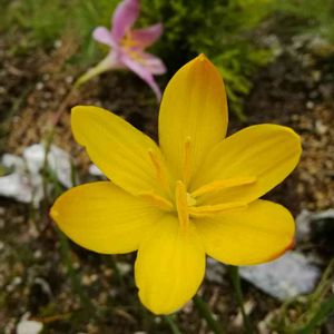 今日は、初夏に 咲く花🌸で すいません、再投稿させて下さいませ。🙇♀️ アイコンは、 そのままで カバー画像だけ これに 変えてみました 🌸 サフランモドキ とか、ゼフィランサス とか 言う、小球根の 花 ..... 初夏から 断続的に 咲きます。 ちょっと、かんかん照りの 日差しには 弱いようです。 この花🌸は、私は 人に もらったと言うか、、もらわされたのですが.... ただ、ピンクの花が 咲くから、、と 根の出た 小球根を 渡されました。 そう言う出合いの 花🌸です。 しかも、その人は どこの 誰か❓ も、知らない 方。。。🤔💦 変な話しで、すいません.... 通りすがりの おばさんに、庭を 見せて‼︎ と、急に 庭に 入って来られ、 その後、2回目 しばらくしてから、 もう 1 度 通りすがった時に、 この花🌸を 貰わされました。 「 これ、あげる‼️ 」 って. ....... どんな花🌸が 咲くかも 知らず、くれた花、、、また その人は、どこら辺の 人かも知れず、また、 それ以後 出会うことは ありませんでした。 もう、10年以上前の話し です。🙇♀️ もらわされた花🌸、、でも 可愛い花💕 でした。。。