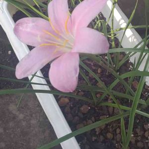 最初の開花が 哀れだったので、 やっと綺麗なお姿をお披露目💗 ゼフィランサスのサフランモドキ 別名─レインリリー 花言葉…汚れなき愛