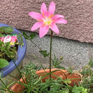 ピンクの花、 ハブランサス ‼️ この花、咲くのを また、忘れてた🌸 鉢植えだと、気まぐれさん。 ずっと 咲かなかったり、急に 咲いたり…… もらった花 だけど、気になる草花の うちの 一つ、、、。