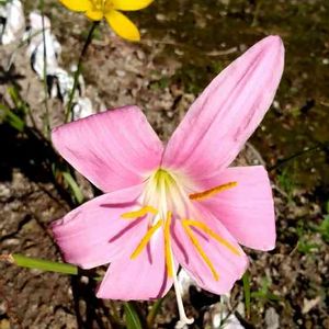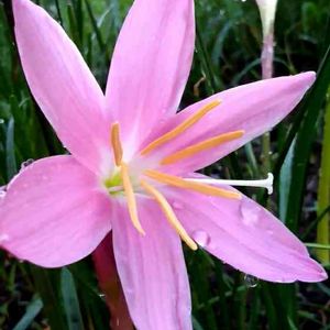 サフランモドキ "ゼフィランサス" 散歩途中で見つけました。 レインツリーの名のとおり 雨の後 パキッと 可愛く 咲いていました。 (すみません レインリリーの間違いです。😅)
