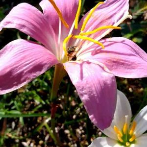 ♬ぶんぶんぶん、蜂🐝が飛ぶ~ 芝桜のまわりに~ ゼフィランサスが咲いたよ~ ぶんぶんぶん、蜂🐝が飛ぶ~♬──ぶんぶんぶんの替え歌より