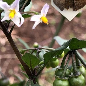 イヌホオズキ 里山の畑の隅に丈50㎝のが一本。 紫の茎も太く葉っぱもしっかり分厚く、野菜かなと思うほど。 まだ咲いていました。 🏷フクロウ祭 に参加させていただきます。 ナス科 ナス属 原産地: 日本 開花期: 7〜10月 実: 0.5〜1cm(丸く、緑色から黒へ、光沢なし) 全草にソラニンという毒性あり⚠️ 別名: バカナス 由来: ホオズキに似ているが役に立たない。 花言葉: 「嘘つき」「真実」 ※アメリカホオズキの黒い実は光沢ありピカピカ✨✨✨