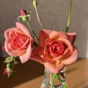 ⌘ミニバラ 名前の分からないオレンジのミニバラさん、剪定して最後のお花。 ⌘ペンタス アップルブロッサム また蕾が開いてきました。 明日からは寒くなるようです。 庭植えのまま頑張って、、、