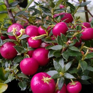 小さな常緑低木に実が付く 12/1 「ペルネッティア」 ツツジ科 流通名→ハッピーベリー