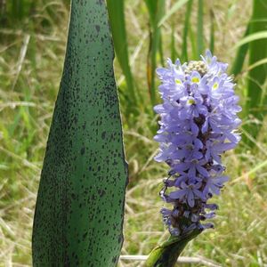 こんばんは😊 沖縄県大宜味村喜如嘉(キジヨカ)の オクラレルカ畑にて… (2023.4.18 picより) オクラレルカ畑🌾一面〜見渡す限り 葉の緑色と花の紫色の中に💜 「あれ!あれ! 何か違う子が…あなたは誰?」 近づかないと オクラレルカの花色と同系色なので 気が付かないですね💕😍 ポンテデリア・コルダータの花も 一緒に植えられていました❣️💜 直立した花茎の上部に 薄青紫色の小さな花が 涼しげに咲いていました💜 優しい陽の光を浴びて 透き通る花弁が美しい💕💜🥰 💜ポンテデリア・コルダータは 水辺で育つ抽水植物です。 主に青色の花を咲かせる種類が 多く長さ10cmほどの花序に 2cmぐらいの小花が下から上に 向かって咲きます。 ポンテデリア・コルダタ (学名:Pontederia cordata ) 北米原産 ミズアオイ科ポンテデリア属 和 名 ナガバミズアオイ (長葉水葵)