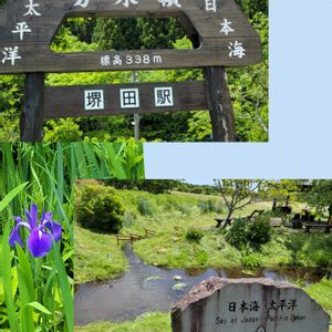 分水嶺 ここから分かれて、日本海と太平洋に流れて行きます 山形県と宮城県の境辺りの、山形県側にあります。 大変珍しいと言うことです