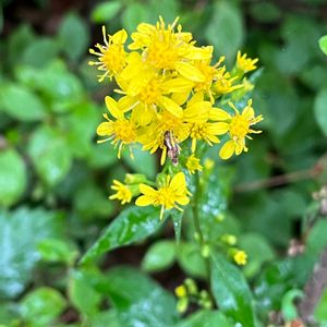 見間違いかと思いましたが雨の中 もう咲いていました 6月11日撮影 ※キク科アキノキリンソウ属 花期 8〜11月 葉は互生 里山に囲まれた水田の周辺、土手で見られる秋草の代表 林の林縁にひっそりと咲いていました