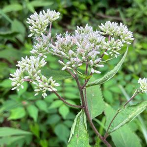 ヒヨドリバナ ※キク科ヒヨドリバナ属 日本全土に分布する 7/2撮影 高さ1〜2m 葉は対生し短い葉柄があり卵状長楕円形で先が尖る 花期 8〜10月 今年は早いのでしょうか? 筒状の小花が集まって白花を咲かせる