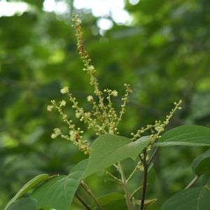 おはようございます☺️ 今日は晴れて真夏日になりそうです。 「アカメガシワの雄花」 近くの公園駐車場、アカメガシワが可愛い花を咲かせ始めました。蓑虫くんも参加してくれました。 以下、メモです。 アカメガシワの花は雌雄異株でこれは雄花。6~7月に枝先の円錐花序に花弁の無い小さな花(雄花)を多数付ける。淡黄色で多数の雄しべがある。 雌花は3個の紅色の雌しべが反り返る。雄花と雌花は咲くタイミングが微妙にズレ、雄花の目立つ頃に雌花はなかなか見つからない。