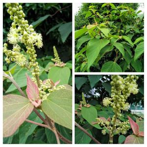 「アカメガシワ」も雌雄異株。何本かあったのですが、雌株は見当たらず💦これは雄株です。 雄花だけど?ほんのりピンクの蕾も可愛いですね😅
