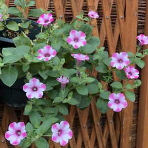 PWのスーパーチュニアサクラフロート 販売終了苗ですが3年目です これとても成長早くて、しかも強い! 寒波外でも大丈夫 ただ丸くはならない 垂れさせタイプです 去年カットしまくってチャレンジしましたが丸くならない 今年は自由に…