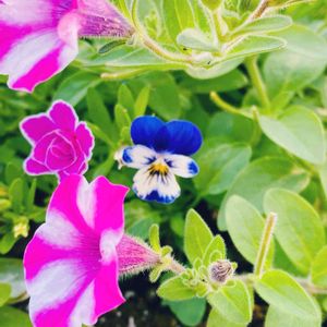 PWアンバサダー(春)で頂いたスーパーチュニア サクラフロートとスーパーベルリッチ サンライズ😊🌸 挿し芽で冬越ししていつの間にかもりもりに🥰大きい鉢に植え替えようと思います😆💓