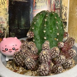 おはようございます🌞 今朝は☁️ このあと晴れるのかな 昨日はゲリラ豪雨みたいな雨が降りました。植物たちは満足そう🌱 私の秘蔵っ子の一人フォルモサくん よく行く市場のような園芸店でやっと出会えました😊 家に連れ帰るとなんとなく紫色になってきて、いそいで日光浴させるとまた緑色に戻ったような…ちびっ子たちは確実に紫だったです。今は少し緑かな😮💨 サボテン、まだよくわからないことだらけだけど、家にいるのを見るとホッとします✌️ 前にいる2チビは植え替え中に取れてしまった子です。ポロッ(痛っ)と簡単に取れてしまいましたが、根っこがあったので、ミニ鉢に植えました。 大きくなるかなぁ😳