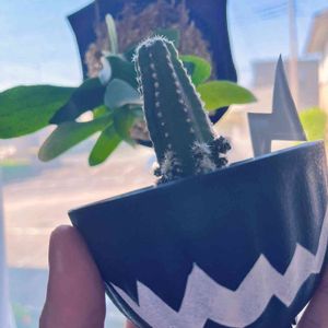 あれからしばらくして、作った植木鉢とサボテンは無事です🌵笑 2号は半乾きになった所で少し模様を足してみました🤔 ペイントしたらどうなるかな?🪴