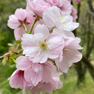 今春、出会ったサクラ🌸から。 先日、オオヂョウチン(大提灯)なるサクラに出会いました🤔🌸🌸 オオヂョウチンはオオシマザクラやヤマザクラを基に生まれたサトザクラ群のサクラで、荒川堤で栽培されていた園芸品種の一つです。 文献などから少なくとも江戸時代の中頃には存在していた見られる古い品種で大きな花を下垂させて咲くのが特徴です。 名前の由来は特徴である下垂させて咲く大きな花の姿が提灯のようにぶら下がっているように見えることからこの名が付けられたと言われています。