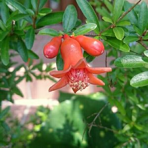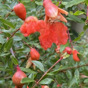 GSの今日のお花ザクロ❣️ 公園で花ザクロ''五彩榴''咲いています✨💕 実は期待出来ない観賞用⁉️ 下はミニザクロ10月に撮したpicです❣️