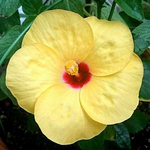 もうすっかり秋の涼しい風が吹いているベランダ。 大きい鉢に植え替えた黄色のハイビスカス🌺 今朝、咲いてくれました。
