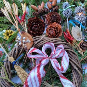 手作りのクリスマスリース🎄土台(野葡萄のツル)から全て剪定等で余った材料で0円リースの完成です😂