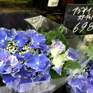 母の日なので色々なアジサイが店頭に並んでました。 これは鮮やかなブルーで大きな花でとても綺麗でした。