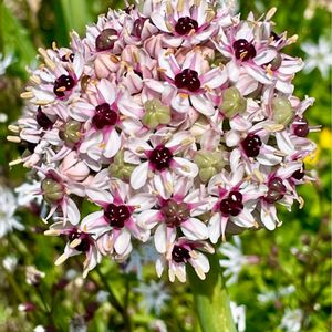 大好き ~アリウム😍 今年もたくさんの出会えますように💖 最初の登場は、、初見です♡(*⁰▿⁰*) 『アリウム・シルバースプリング』 中心がローズピンク💗の白花です… 春らしい色合い、可愛い ~💕