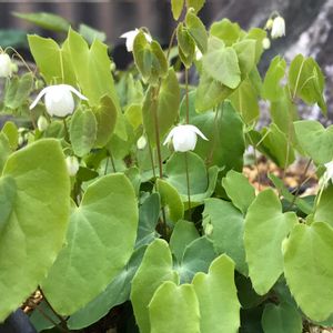 お迎えして2年目の白花梅花イカリソウの小さなお花が咲き始めました(ღ˘⌣˘)♫ 学名 Epimedium diphyllum 分類 メギ科イカリソウ属 開花期 4~5月 高さ 20~30cm 耐寒性 強い