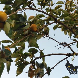 今日のお花「柿」 ウチにも有ります★花はもう無いですが…。 毎朝、カラスの大群が大きな声でウチの柿を狙ってます…。 あまりにうるさくて 柿の木に猫ちゃんの飾りを吊るしてみました。 静かに食べてくれるなら、何個か差し出しますが…カラスさん。