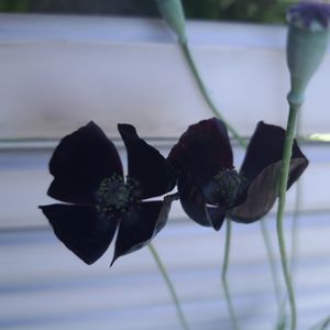 ポピー✨ 植えてないのに 突然黒いポピーが咲きました❤︎ ちょっとビックリ😮 オシャレ~♪と言ってくれた友達に 摘んであげました♡🤭🍃