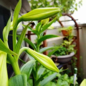テッポウユリ 白のホワイトヘブン ピンク白のグラデーションの トライアンファーター そしてカサブランカ 今年初挑戦の鉢植えユリ栽培 もちろんベランダです。 バラのことばかり気になって うまくキレイなつぼみにしてあげられませんでした(・・;) アブラムシにたかられたり 水不足になったの原因でしょう💧 写真のは なんとかここまで育ちました😊