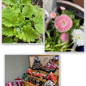 ミニモニ祭り🏮🏮🏮 4周年おめでとうございます㊗️ 🌸サクラサク🌸 桜咲いてないので、やっとつぼみが出て来た毎年零れ種からのサクラソウとピンクのデージーで参加させて頂きます💞 そしてお雛様も明日でお片付けですね! でも我が家はなかなか片付けないのよ😅 お嫁に出したくないのかなぁ〜🤣