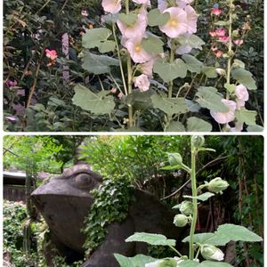 1枚目 🏷️今日のお花のタチアオイ もしかしたらカエルの日か白い水曜日に投稿済みかもしれません😽 2枚目 マルシェ7日まで延期となりました!! 3枚目 今木といえば大屋根リング!?暑い中、嬉しい木陰を作ってくれていますね❣️ 4枚目 今日は月末🏷️オケツの日