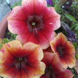 おはようございます☀️ おしゃれなペチュニア🎵 カダン ファンハウス アメジストとマンゴーパンチ‼️ 鉢増ししましたー😆6→8号鉢へ。 このペチュニア育てやすいかも‼️😃 6号鉢ではキレイにまとまって咲いてくれてました。 鉢増ししたら、さらにゴージャスに咲いてくれると思い、増しを決行‼️ アメシストは植え替えたらパッカーんしちゃった😂 株元の通気性が良くなったとおもえば😅 今後に期待🎵