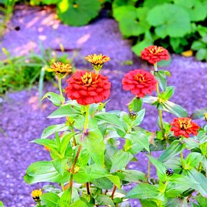 道端の木陰でジニアが咲いていました。 草丈も高くて目立ちます。 蕾も沢山付いてて冬まで咲きそう🤔