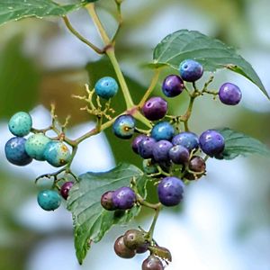 前から一度見てみたかったノブドウ、家からすぐ近くの散歩道でみつけました 🍇 トルコ石か?ラピスラズリ か?という魅惑的な色✨