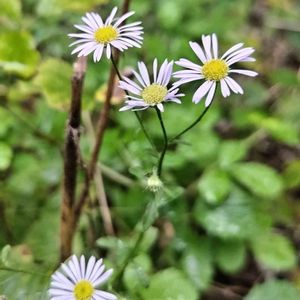 【シオン】 10/11 投稿したのはヨメナ、今日のお花はシオン。私には違いがよく分かりません。葉がつるつるかギザギザか、背が高いか低いか、花が多いか少ないか…等々。 Google lenzが教えてくれたので一応🏷をつけさせて頂きます。 別名 : 十五夜草 思い草 紫苑色と呼ばれる伝統色の着物を纏って追想を巡らす秋の夜長…思いを馳せながら、今夜はお休みなさい💤