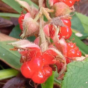 今日の花のホトトギスの隣に ルビーのようなフユイチゴ熟れてます🍴🍴🍴🤗❤️❤️❤️🎵 秋だよね〜💕❤️💕❤️🎵