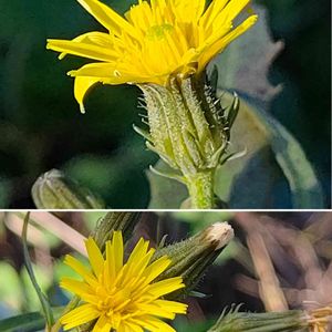 コウゾリナ 🌿キク科 コウゾリナ属 ✽大きなもので1.5mになる越年草 ✽全体に剛毛があってざらつく ✽ロゼット状の根出葉ほ花時には枯れる ✽互生する葉は倒披針形で基部は下部の葉で翼状の柄となり茎に流れ、中部の葉は茎を抱く 7月頃から見てましたが、丈は短いけどまだ咲いてました💛