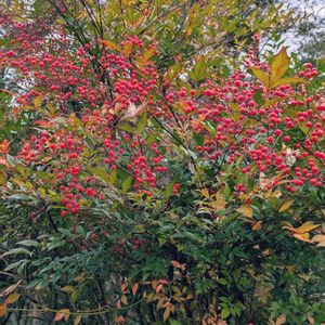 散歩道の立派なナンテンです🤗 毎年赤い実がたわわに実ります🔴 散歩中の方々が立ち止まって見て行きます🤗