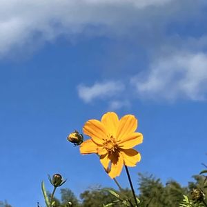 こんにちは♪ 急に春が来たようです💦 ①②③④⑤今朝の散歩道で ①青空とキバナコスモス💛🧡 ②③今日のお花ピラカンサス びっくりするくらい巨大 水面にスレスレです ④山茶花 ⑤ホトケノザ 🏷️ビタミンカラー 🏷️土曜はお空の発表会 🏷️歩くの大好き 参加します 冬になったり春になったり… 体調管理にお気をつけください
