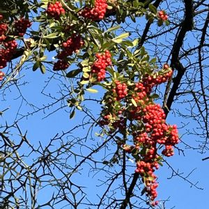 こんにちは😊 お散歩には最適なお天気🐾 川沿いのピラカンサ これは少し疎らだけど みちみちに実がつくと 結構怖い