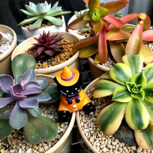我が家のハロウィンカラー🎃の多肉さん パーフリフォンニュルンベルク、スターバースト、ロメオ、ヒマツリ達です🎃💜🧡