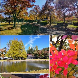 昨日の散歩道🐕🐾👣より いつもの公園も紅葉が進んできました。 カサカサと☀🍂鳴る落ち葉を踏みながら🐾の散歩🎶🐕 木の枝いっぱいの🔴実、ドウダンツツジのグラデーション🍂 ー金沢、北部公園にてー