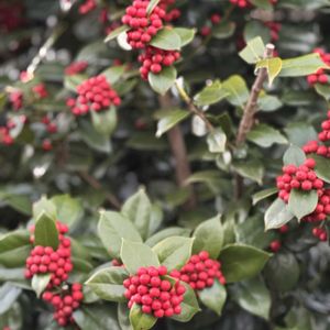 昨日の散歩道➰🎶 玄関入口に植えてあるシンボルツリー🌳 クリスマスホーリー? 近付くと葉っぱが丸く棘がない?? よーく見てみると奥の方に矢羽根の形の葉っぱがあります。 うちにもあるチャイニーズホーリーかな❣️ 古木になると葉が丸くなるそうで、人も木も年齢を重ねると丸く優しくなるのだな〜💗