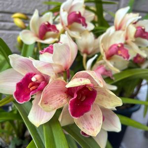 シンビジウム ひよこちゃん •*¨*•.¸¸☆*・゚ 10年以上居るひよこちゃん🐥 1鉢から6鉢に増やし3鉢はお嫁にいきました🤗 2週間もすると中央が真っ赤に変化します(*´˘`*)♡