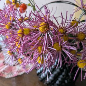 🍀🌻🪴💐🌹🌻🍀 🍀🩷古典菊(コテンギク)肥後菊・佐倉姫🩷🍀 💐菊(キク)の花言葉は(信頼) (高貴)  (高潔) (高尚)です 💐奈良時代に中国から薬用・鑑賞用   として日本へもたらされた菊は、  その薬効と美しさからか(不老長寿)  の象徴でもありました 💐お葬式に菊を使うようになったの   は明治時代からと言われていて、  これはフランスで葬儀の際、祭壇   に白い菊を飾る文化があったこと  が元になっていると言われていま   すが、はっきりとした由来のある  説ではなさそうです 💐もともと菊は丈夫で花持ちが良い   品種として知られていました、ま   た種類が多く他の花とも合わせや  すいためかも知れません *以上は古典菊についての特徴です   ここからは肥後菊も特徴です 💐肥後菊の花言葉は(高貴) (高潔) (高  尚)です 💐肥後菊はキク科キク属の宿根性(多  年草)です 💐肥後菊は「肥後六花(ひごろっか)」(朝顔、椿、菊、芍薬、山茶花、花   菖蒲)の一つで、肥後地方(熊本藩)  で特に伝統を持つ6つの花です 💐肥後菊の特徴は 一重咲き で、花弁   が筒状(細長い管のような形)です 💐中心の 花芯(中央部)が大きく盛り  上がって見えます、これは肥後六   花(肥後地方の伝統的な園芸植物群)  の特徴の一つです 💐肥後菊の色には白・黄色・赤など   があります 🍀🌻🪴💐🌹🌻🍀