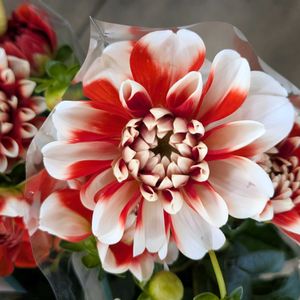 🍀🌻🪴💐🌹🌻🍀 🍀❤️🤍ダリア・ラベラ グランレッド🤍❤️🍀 💐ダリアの花言葉は(華麗) (気品) (移 り気)です、ダリアの華やかさや美 しさから(華麗) (気品)に通じてい るとされています 💐他にも(感謝) (温かい心) (希望) (栄 光) (情熱)と言う花言葉があります 💐ダリアはキク科ダリア属の多年 草、原産地はメキシコ、中央ア メリカです 💐和名はダリア、別名テンジクボタ ン(天竺牡丹)です 💐この品種は赤から白へのグラデー ションカラーを持つ大輪タイプの ダリアです、花の中心付近が赤系 外側または花先に向かって白色~ 淡色が入っています 💐草丈は高さ〜50 cm程度で比較的 コンパクトにまとまるタイプです 💐開花期は(5〜10月)頃までで、比 較的長く花を楽しめます 🍀🌻🪴💐🌹🌻🍀