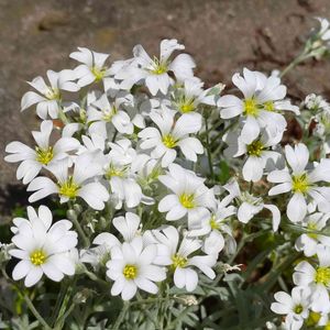 🍀🌻🪴💐🌹🌻🍀 🍀🤍セラスチューム(ナツユキソウ)🤍🍀 💐花言葉 “思いがけない出会い” 💐別名ナツユキソウ(夏雪草)と呼ばれる ように、夏には見られない粉雪が降り 積もったように咲き広がる純白の花の 様子からきています 💐春から初夏に、白い毛で覆われた銀白色 の披針形の葉の間から伸びた花茎の先に 白い花弁の先がハート形に切れ込んだ 5弁花が絨毯(ジュウタン)のように咲き 広がります 💐花の名は、属名のCerastiumの音読みで ギリシャ語のcerastes(角状の)に由来し 多くの種子に角があることから名づけ られています 🍀🏵️🌼🌸🌼🌺🍀
