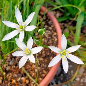 🍀🌻🪴💐🌹🌻🍀 🌿🤍ホソバオオアマナ(細葉大甘菜)🤍🌿 💐朝は蕾で外側が緑で太陽が出ると白い 花が咲いてきます 💐閉じても開いても綺麗な花です 💐茎の途中から分枝して、いくつも花を つけます 💐花言葉は“純粋”で、真っ白な花のこと が由来となっています 💐その他の花言葉は“才能” “潔白” “無垢” 🍀🌻🌹💐🌺🌻🍀