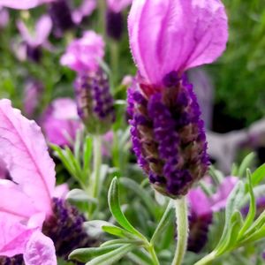 ピンクと紫 🍀🌻🌷💐🌺🌻🍀 🍀💗フレンチ・ラベンダー💗🍀 💐花言葉はその他に“疑い”,“不信“,”優美” ,“沈黙“,“繊細”,,“清潔”“豊香”が有ります 💐ラベンダーという名前は、ラテン語で 「洗う」という意味の「lavare」が語源 で、ローマ人が入浴の際にラベンダー をお湯のなかに入れるのを好んだこと にちなんでいるそうです 🍀🌻🌹💐🌺🌻🍀