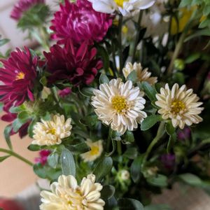 🍀🌻🪴💐🌹🌻🍀 🍀🤍♥️小ギク (小菊)♥️🤍🍀 💐小菊の花言葉は(純情)です、大菊 や中菊に負けないように咲く小さ な花の可憐さからつけられました 💐小ギクは一般的に小型の菊の一種 で、日本では秋に咲く花として広 く親しまれています 💐小ギクは比較的小さな花を持ち、 花びらは細長く、中心はしっかり とした円形の花芯を持っていて、 花の色は白、黄色、紫、ピンクな ど様々です 💐小ギクは一般的に30cmから1m程 度の高さで、花径は約2cmから5 cmほどの大きさです 💐通常の花期は夏から秋にかけて花 が咲きます、特に10月から11月に かけて多くの品種が見られます また、早めの旧盆に出荷出来る ように栽培調整されています 🍀🌻🪴💐🌹🌻🍀