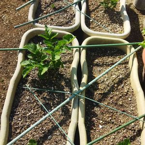 🍀ジャガイモの発芽🍀 写真では分かりにくいと思いますが、やっと生え揃いました。種芋からではないので、どうかなと思っていたところ、最後のひと芽が覗いてきました😊 支柱を並べているのは、雀の砂浴び防止です🍀